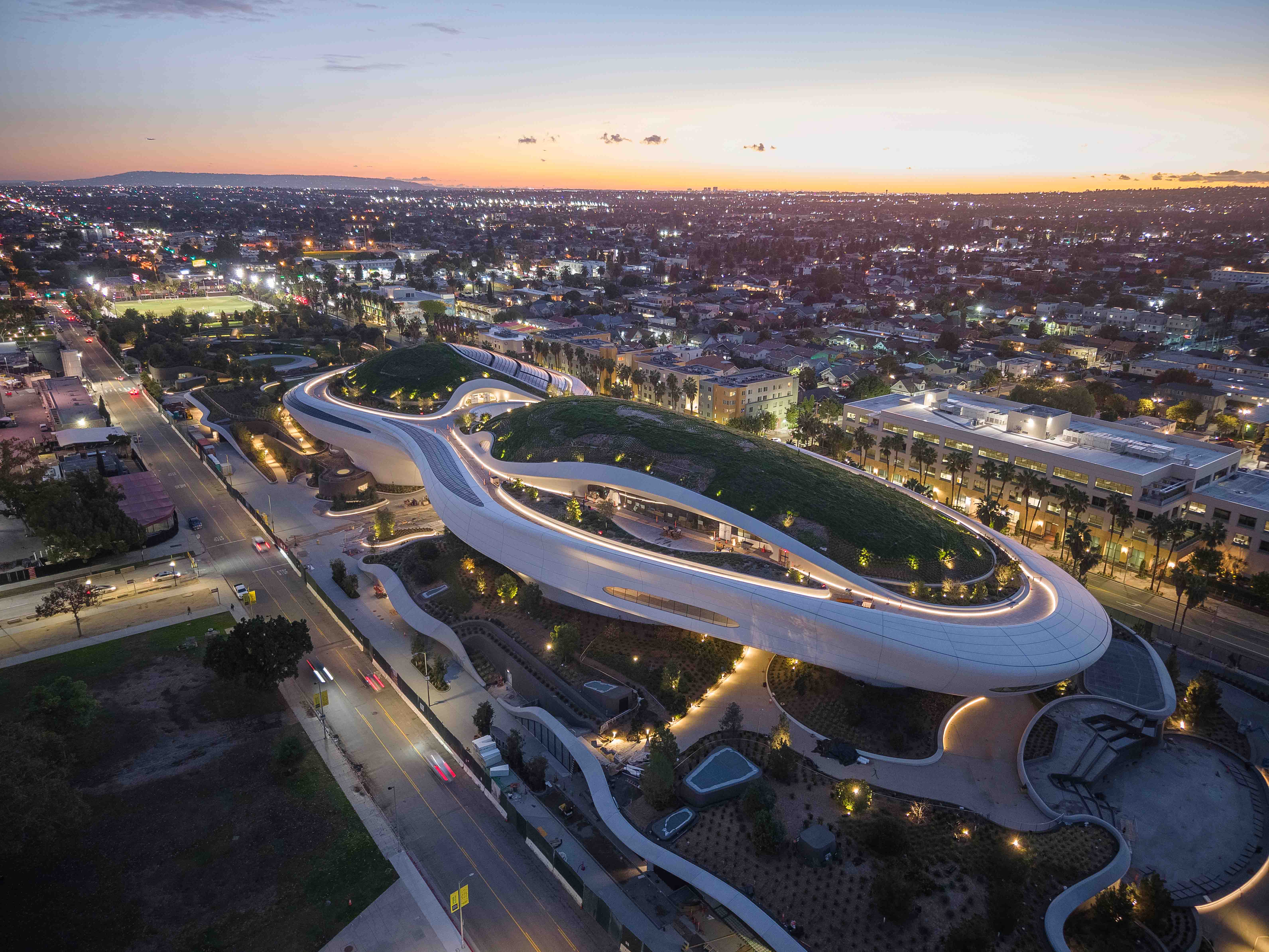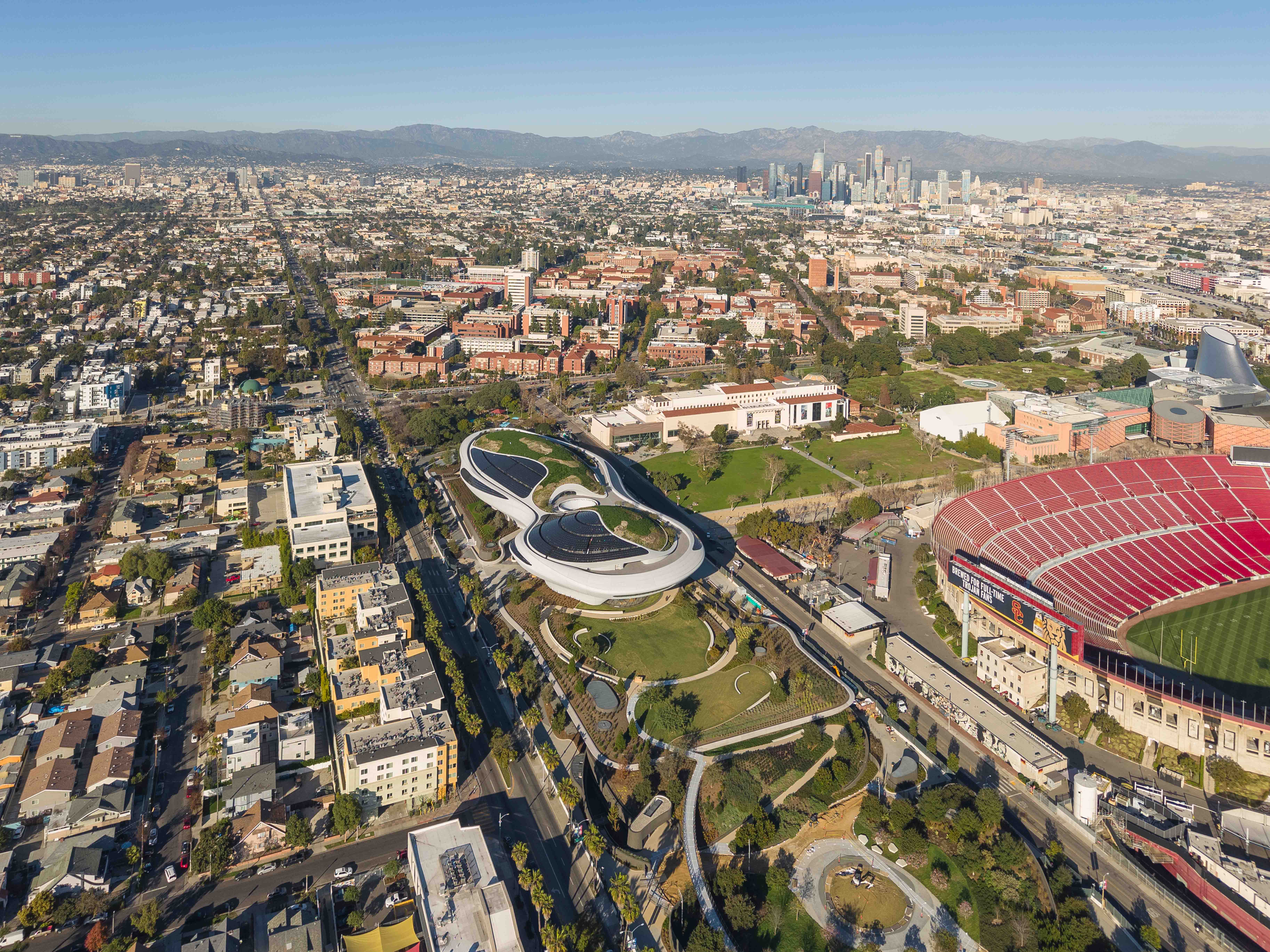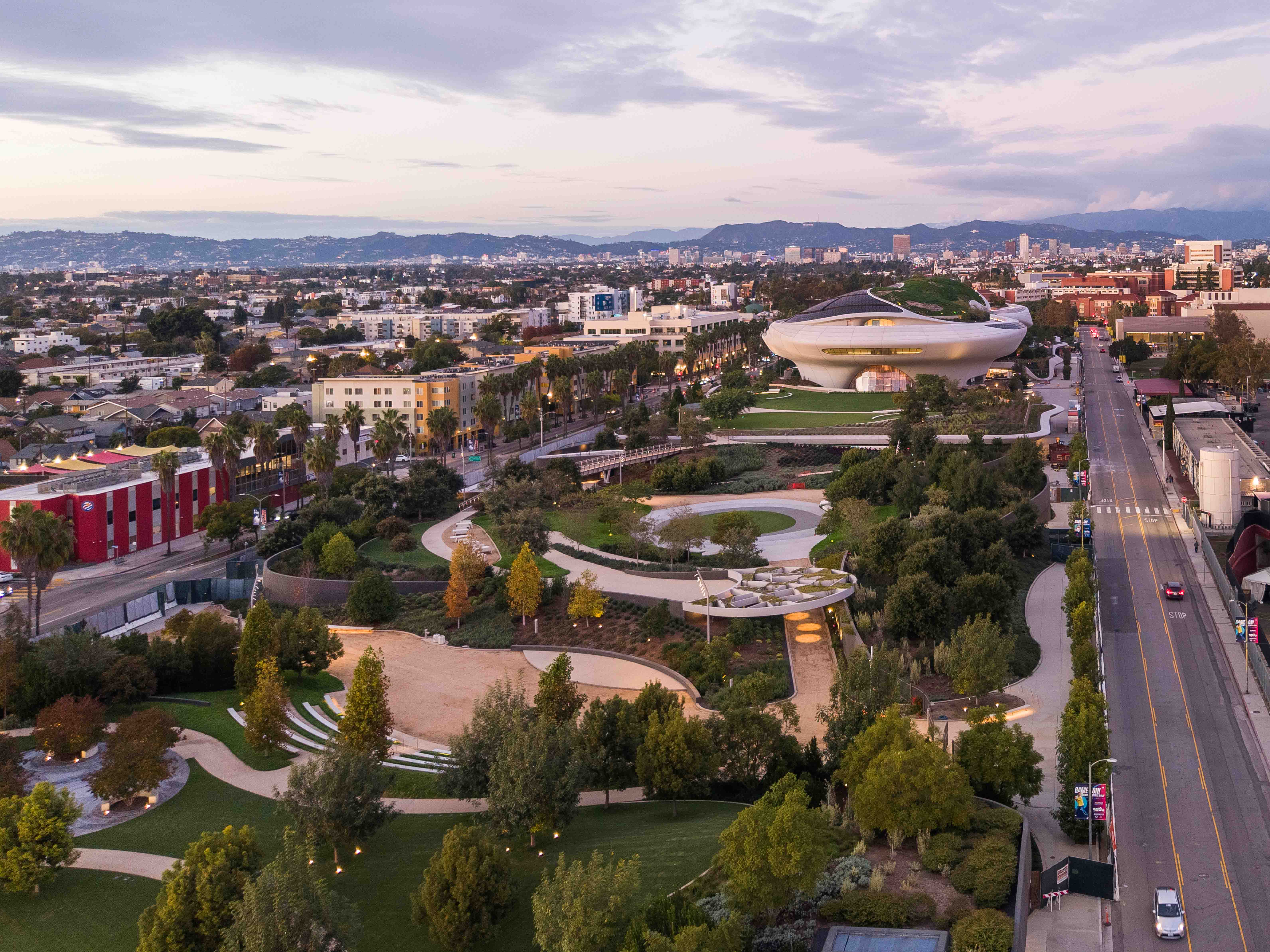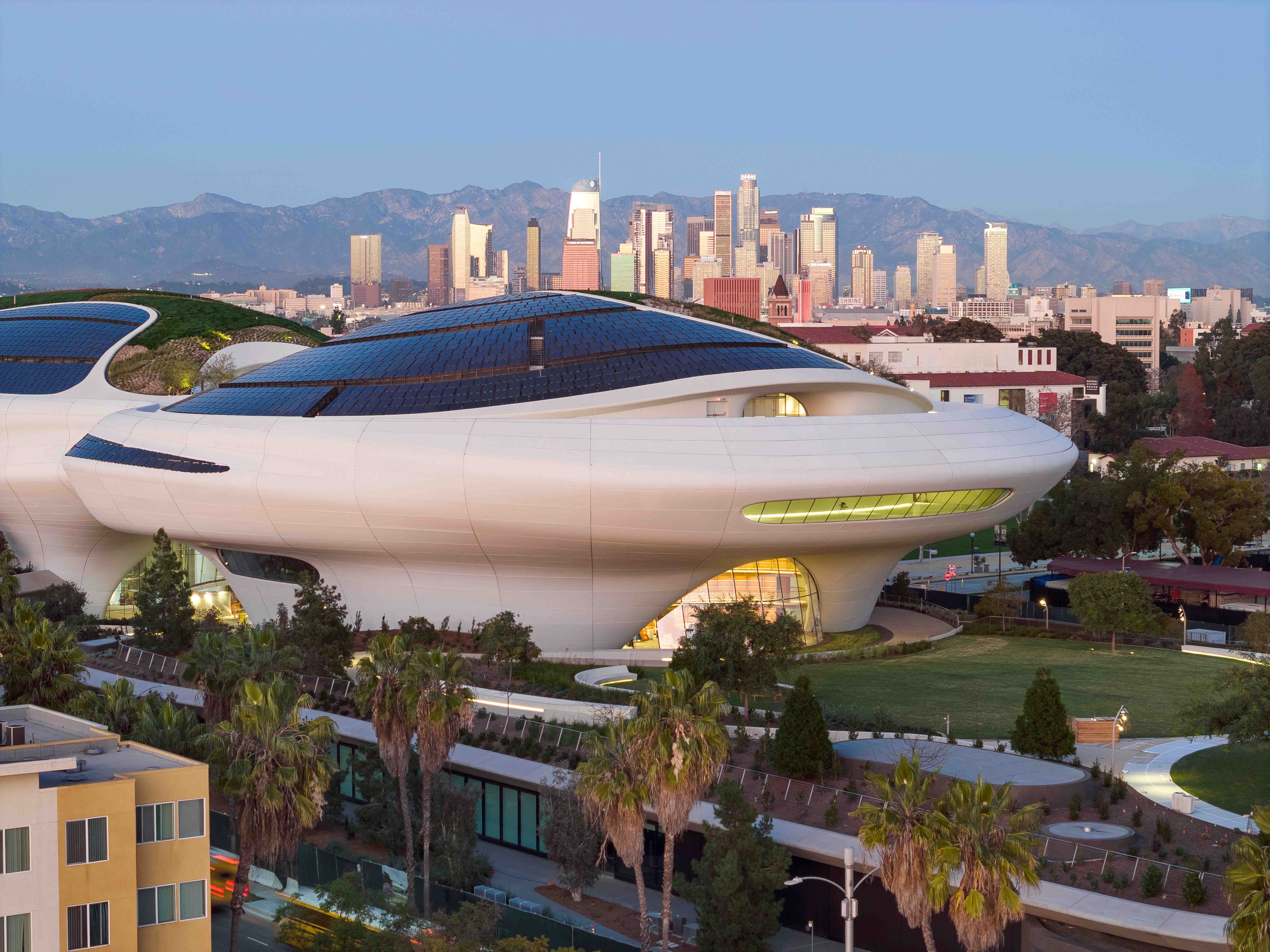 The Lucas Museum is designed as a place to spend an entire day—and evening—in one dynamic setting. In addition to its galleries, our five-story building features two state-of-the-art cinematic theaters. Visitors can enjoy a café and a rooftop restaurant offering sweeping views of the city. Retail spaces present signature merchandise inspired by the museum’s collection.